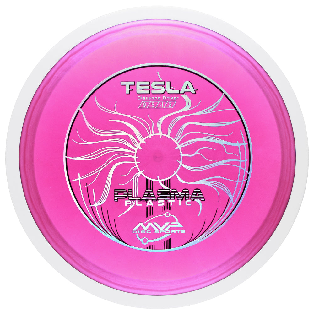 • The Tesla’s responsive design balances a subtle turn and reliable fade, while a pronounced glide and forward finish gain extra distance. The Tesla extends high power or headwind lines and has plenty of bite to fade back reliably and reduce lateral drift. The Tesla can be considered the big brother to our acclaimed Volt fairway driver. Choose the Tesla for long-range pinpoint accuracy. Please note that Plasma plastic will sometimes have a swirly/burst design that incorporates multiple colors. The color listed is what we feel describes the disc best.