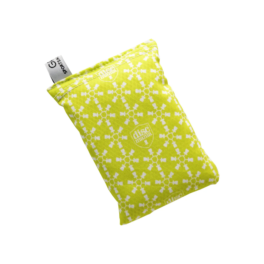 The Sportsack is a must have accessory to keep your hands and disc dry while maintaining a consistent grip. Simply roll the bag around in your hands for a few seconds to soak up any moisture and oil to restore your natural grip. Each 100% cotton bag is filled with clay fill for added grip. The Sportsack does not leave behind a chalky dust or messy residue and lasts much longer than rosin bags or other powder based products. Comes packaged in a zip lock plastic bag for storage. If the sportsack becomes wet, continue to use and will dry itself out.