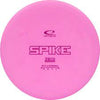 Spike has a stable flight path and is excellent for curve shots and straight shots alike. Will fly very flat for shots up to 300ft. Compared to ordinary putters it has a shallower grip and a smoother edge. This will prevent the disc from sticking to your hand on release. The top surface has TractionZones for optional varied grip. Spike is the disc of choice for those one-disc-tournaments.