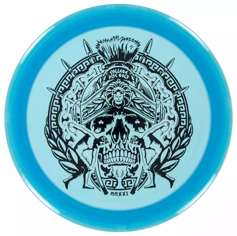 This ain’t your grandma’s College Disc Golf fundraiser disc. Instead of an unassuming CDGC logo, Innova went for something that grabs a hold of you with full-on bravado. Proceeds will support the College Disc Golf National Championships. Stamp color will vary.