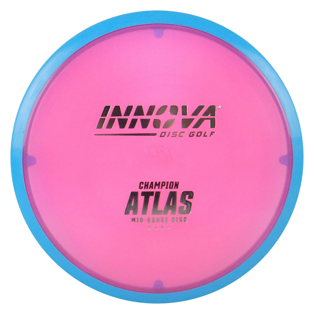 The Atlas is an overmold that combines a firm, low-profile flight plate with a grippy rim. This Mid-Range flies straight with minimal fade, combining accuracy and control. The Atlas performs well for both backhand and forehand throwers forgiving small throwing errors better than any other Mid-Range. The Atlas features four 'compass points' located on the underside of the disc. These ports are where the rim is injected over the flight plate. This disc is close to the newer Innova mold the Jay, but with more glide and an interesting hand feel! Stamp color will vary. First Color listed is the Rim Color, second is Flight Plate Color