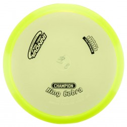 The King Cobra has the stability players are looking for in a Mid-Range combined with long lasting Champion plastic. With just the right amount of high speed turn to fly straight at full power, the King Cobra is a perfect 'Go-To' Mid-Range which should become straighter finishing with age. The King Cobra (Ontario mold) falls between the Roc+ and the Shark on the stability spectrum. Like the Super Stingray, the King Cobra is more stable than it's DX counterpart the Cobra. Stamp color will vary.