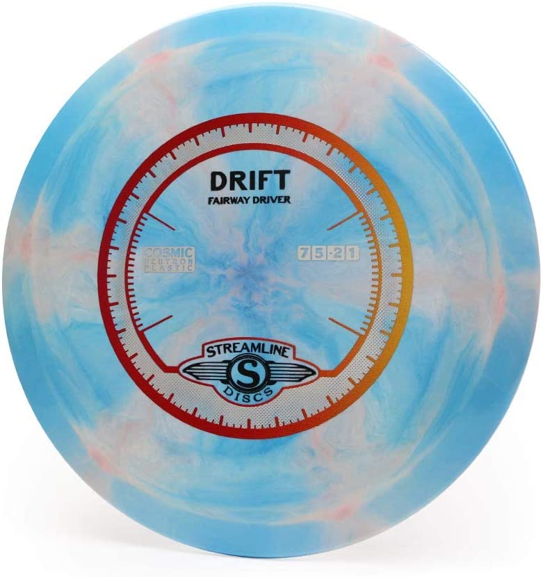 • The Drift is designed for laser straight lines ending with a gentle fade and an exceptional amount of glide, providing easy distance with this highly versatile driver. The Drift has a modest rim size, a slightly domed profile, and an easily activated turn for hyzer-flips or big turnover shots. The Drift will make its grand debut in Neutron Plastic, pairing perfectly with its bright opaque colors, durability, and grip. This Speed 7 driver is the first fairway driver in the Streamline fleet and continues the trend of stunning triple-foil stock stamps. Please note that due to the cosmic design many discs will be a combination of two colors. The color listed is what we feel describes the disc best.