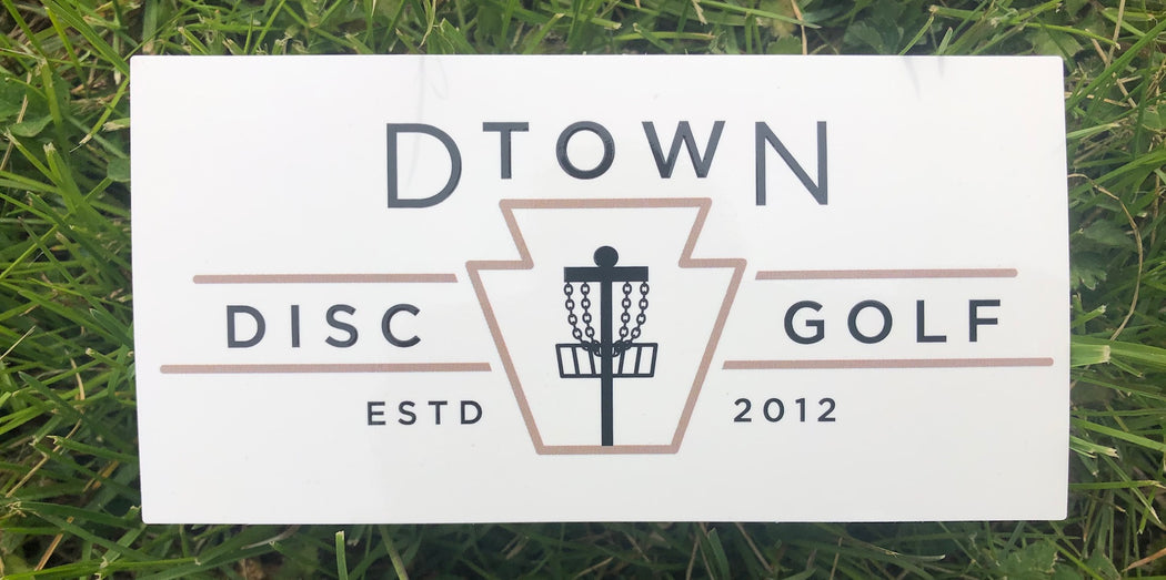 This is a 6”x3” sticker featuring our store logo on a white background.