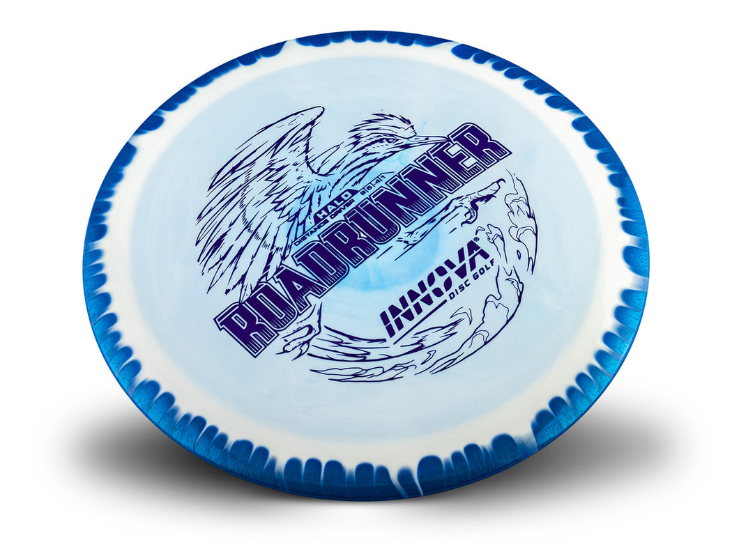 Halo discs are so gorgeous you could say they’re heavenly. Halo discs feature a vibrant, pearly colored edge that blends into a brighter center and are molded in premium Star plastic. Halo discs have slightly more stability and glide. The Roadrunner is a long-range distance driver with lots of glide. Great for rollers. Best distance driver for turnover shots. Stamp color will vary.