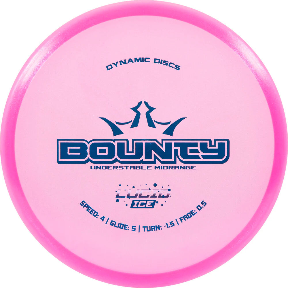 • The Bounty brings a different feel to the Dynamic Discs midrange lineup. With a shallow rim and bead, the Bounty is a slightly understable midrange that acts like a slower Maverick. At shorter distances and slower speeds, the Bounty will fly very straight with good glide and minimal fade. When thrown with more speed, the Bounty will slowly move to the right without burning into the ground. Use the Bounty to shape shots in the open or in the woods, and you'll love the control you gain! Stamp color will vary.