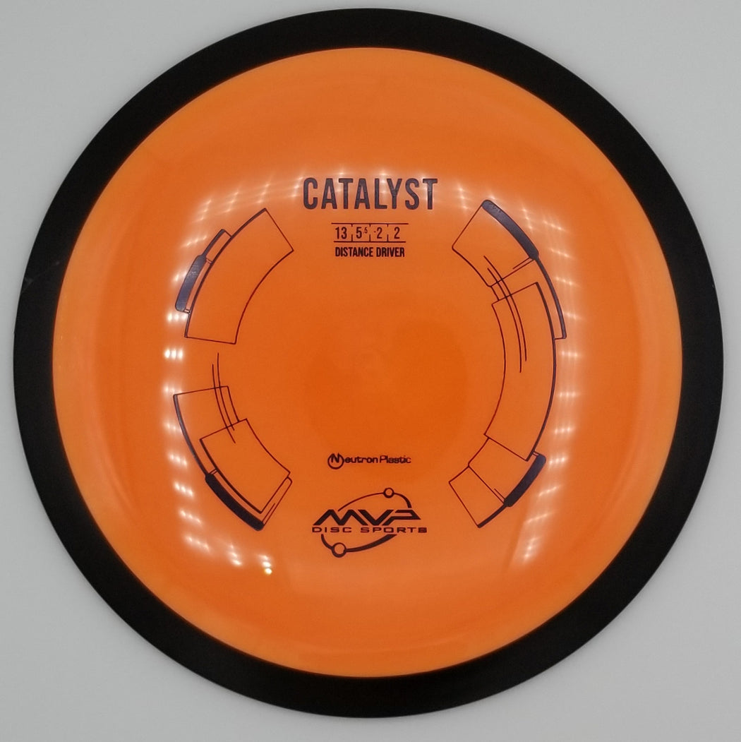 • The Catalyst is a perfect starter for big distance. Its stability profile lends itself to being incredibly useful even when underpowered. Catalyst is similar to a longer Wave. High power throwers will be able to control rollers, sky anhyzers, and tight turns, while average to low power players will get easy distance with great glide, and a power responsive amount of turn-to-straight. The Catalyst is molded with the same core and nice even dome as the Octane, yielding extra glide for maximum distance shots.