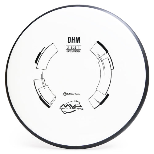 Laser straight drives and confident putts are the best ways to describe the brand new Ohm from MVP. Debuting in Neutron plastic, the Ohm is inspired by the Streamline fan-favorite Pilot, but with enhanced GYRO® effect. The results are incredible! The tried and true shape provides both a reliable grip and loads of glide for some truly impressive drives and putts. The Ohm is sure to find a place in every disc golfer’s bag and, thanks to the durability of Neutron plastic, stay there.