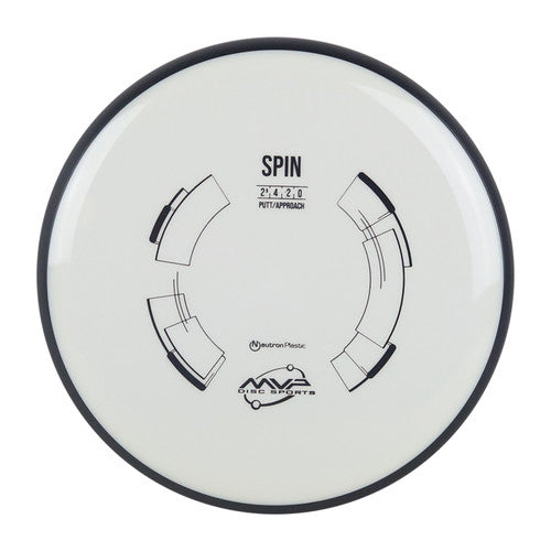 The Spin is best characterized by its power response and smooth turn. At short range the Spin is a point and shoot straight putter, but at approach and driving distances the Spin will exhibit a responsive turn that can be manipulated by the thrower. The Spin is a putter that any throwing style or skill level can throw straight — whether from its forgiving low-power flight or its precision controlled high power response.