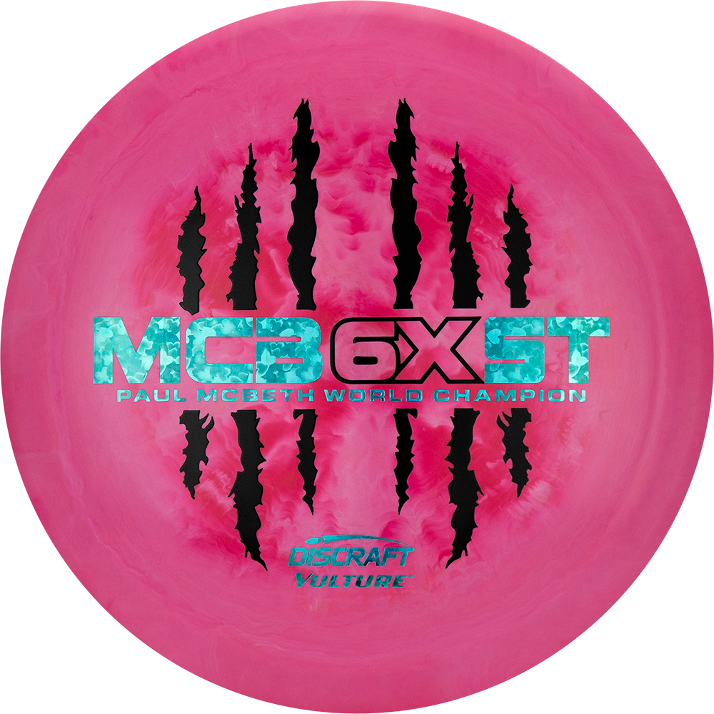 This is Commemorative 6x Stamp for the 6x world champion himself Paul Mcbeth, Get them if you still can! The Vulture is described as a well seasoned Predator, with less overstability and more glide. The Vulture is predictable in wind and a great long range placement driver. Please note that due to the swirl of ESP plastic that an individual disc may be a mix of different colors. The color listed is what we feel best describes the disc. Stamp color will vary.