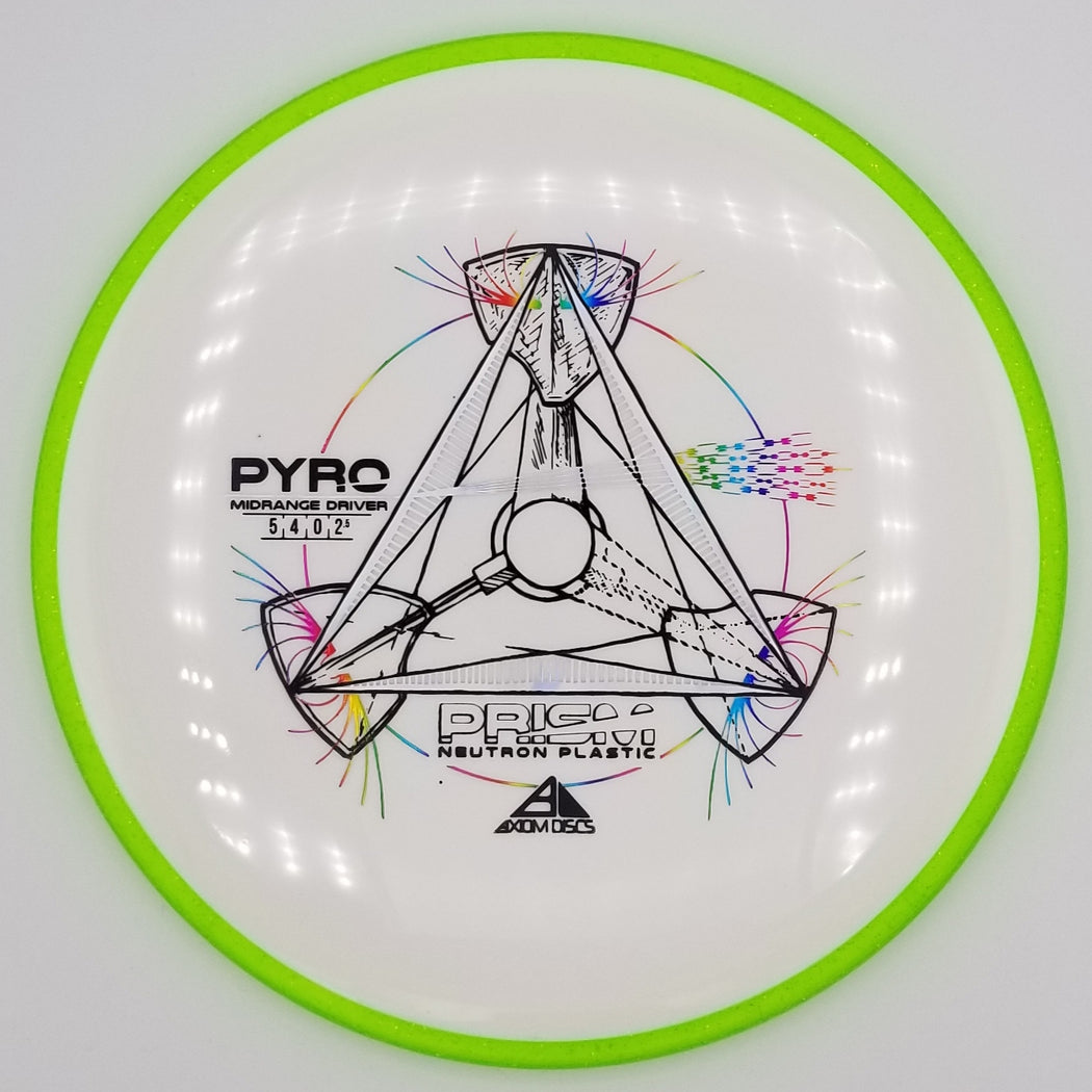 The Prism Proton Pyro was designed as Axiom’s first overstable Midrange with more glide than the MVP Deflector and a commanding stable finish. The Pyro has enough stability for consistent flights in strong winds and powerful throws without losing its line and turning off target. Stamp colors will vary.