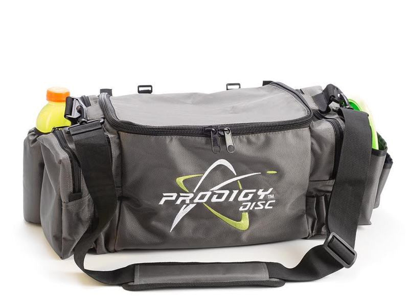 The Prodigy Tournament Bag is a highly functional, nylon bag designed to carry up to 24 golf discs. It features a side-mounted putter pocket as well as a concealed, insulated secondary drink holder. Extra storage compartments are also available to hold valuables and accessories. The Tournament Bag is equipped with a single strap on our patent-pending suspension clips. These clips help create less stress on the shoulders during practice and tournament play. The 4-clip system adapts to almost all backpack style straps.