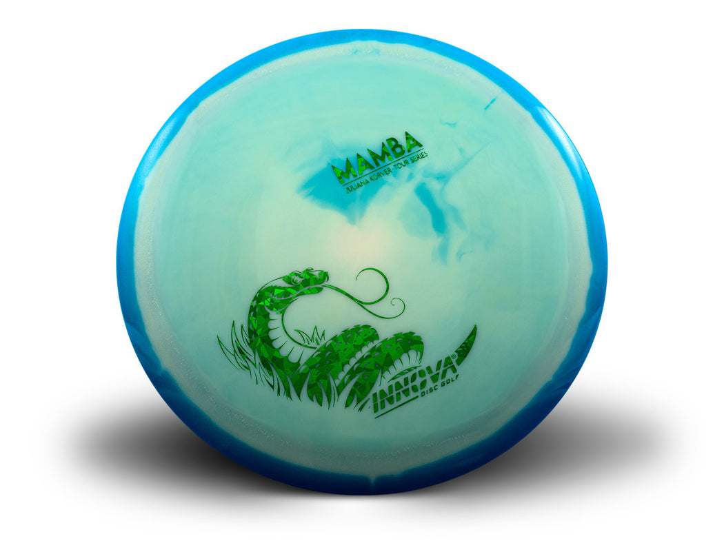 • Halo discs are so gorgeous you could say they’re heavenly. Halo discs feature a vibrant, pearly colored edge that blends into a brighter center and are molded in premium Star plastic. Halo discs have slightly more stability and glide. The Mamba is the easy to throw distance driver getting turn out of even the slowerest of arm speeds. Great for distance turnovers and hyzerflips. Stamp color will vary.