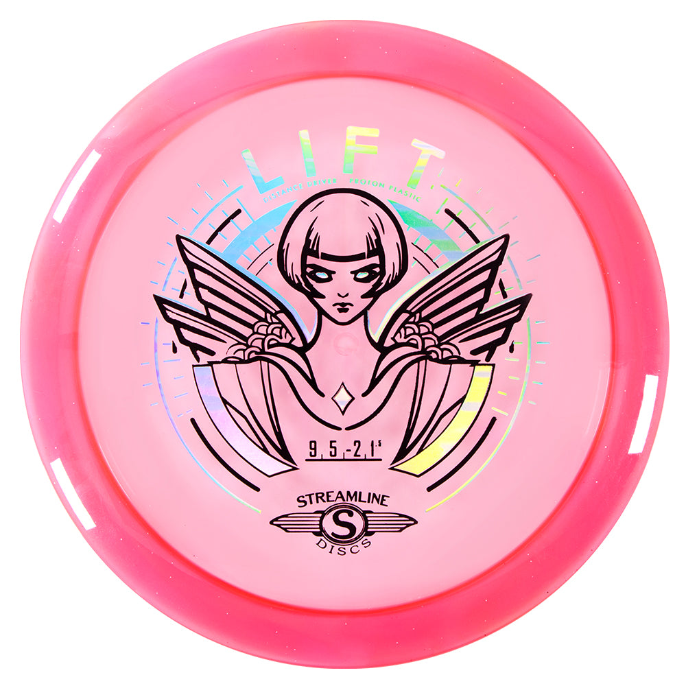 Prepare for liftoff with the new distance driver from Streamline, the Lift! The Lift is Streamline’s new understable distance driver, designed as a straight flying driver with a comfortable rim size and slightly domed profile. The Lift is the second disc along with the Flare in the new 19mm Speed 9 Driver Class for Streamline. In Streamline Neutron Plastic the Lift has premium grip and durability, along with a huge variety of Neutron and Cosmic Neutron color options. For controllable flight lines with effortless glide, activate Bernoulli’s principle with the new Streamline Neutron and Cosmic Neutron Lift!
