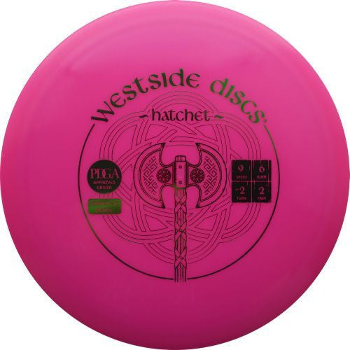 The Hatchet fits any hand and is extremely user friendly. It holds the line you put it on and is very controllable. A must have for all players the Hatchet will allow you to throw frozen rope lines. For professional players it is a controllable fairway driver that glides and can be used for rollers. For lower arm speeds, the hatchet will glide and give you that anhyzer shot you have been missing.