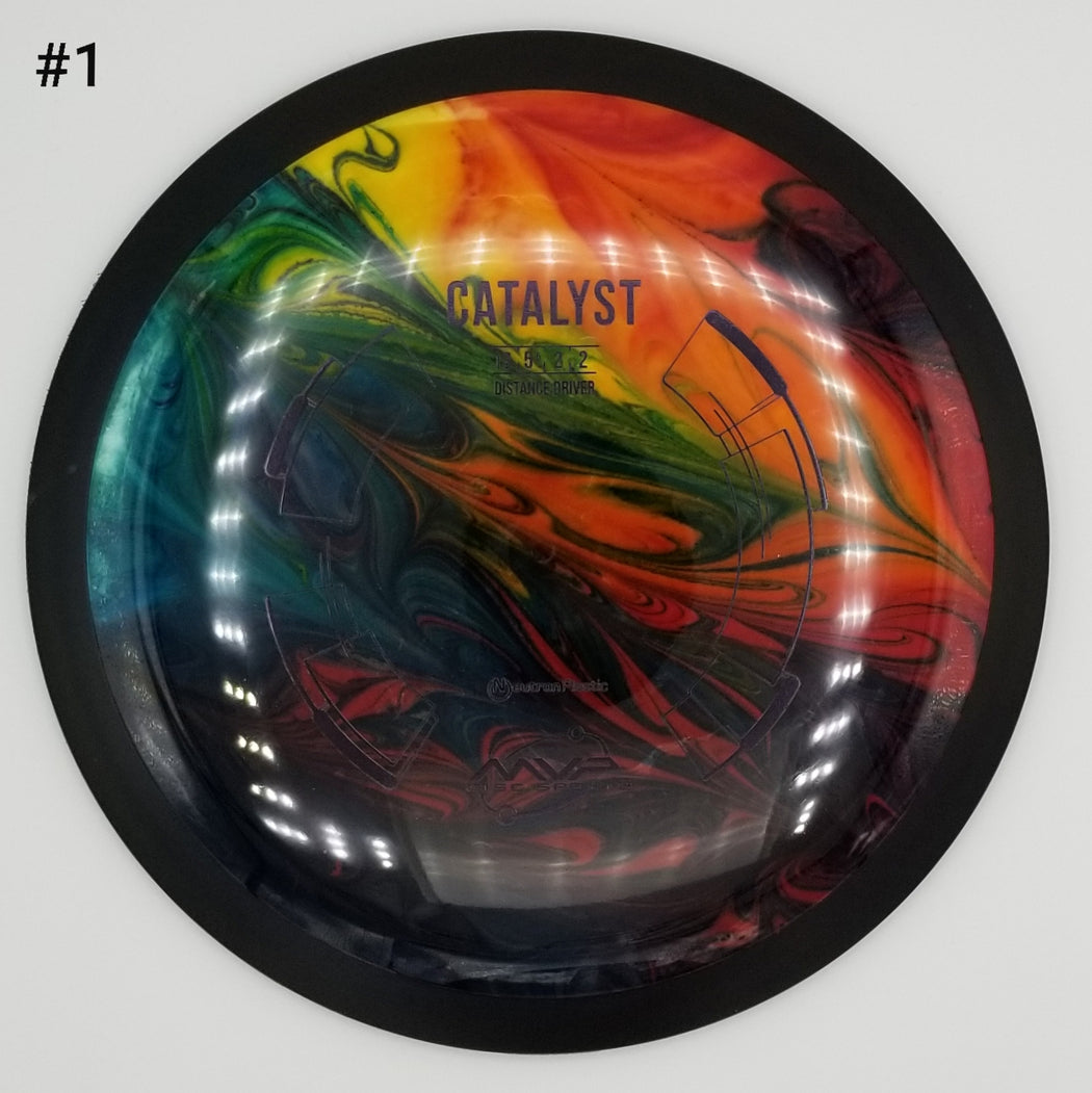 The Catalyst is a perfect starter for big distance. Its stability profile lends itself to being incredibly useful even when underpowered. Catalyst is similar to a longer Wave. High power throwers will be able to control rollers, sky anhyzers, and tight turns, while average to low power players will get easy distance with great glide, and a power responsive amount of turn-to-straight. The Catalyst is molded with the same core and nice even dome as the Octane, yielding extra glide for maximum distance shots. -