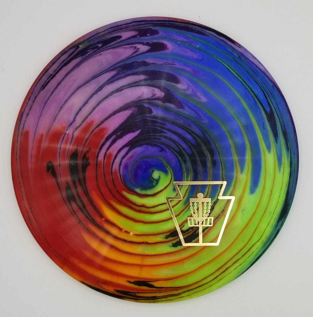 Locally dyed right here in Doylestown, Pennsylvania by Windrunner Discs. Check them out on Instagram @windrunnerdiscs.