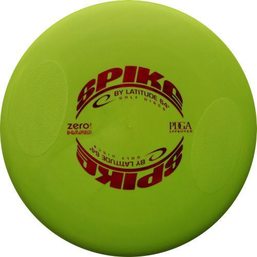 Spike has a stable flight path and is excellent for curve shots and straight shots alike. Will fly very flat for shots up to 300ft. Compared to ordinary putters it has a shallower grip and a smoother edge. This will prevent the disc from sticking to your hand on release. The top surface has TractionZones for optional varied grip. Spike is the disc of choice for those one-disc-tournaments.